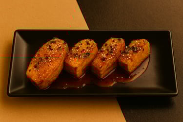 En Can Kenji descubrirás una propuesta gastronómica que combina tradición japonesa con guiños mediterráneos. Su carta ofrece una gran variedad de pequeños platos para compartir, como tatakis, tempuras, sopas y elaboraciones a la plancha, que reflejan el espíritu de una auténtica izakaya.